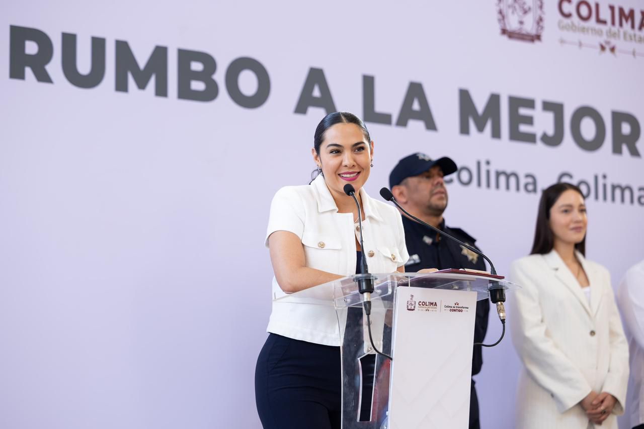 Gobernadora Indira Vizcaíno entrega ascensos y 70 patrullas a la Policía Estatal de Colima