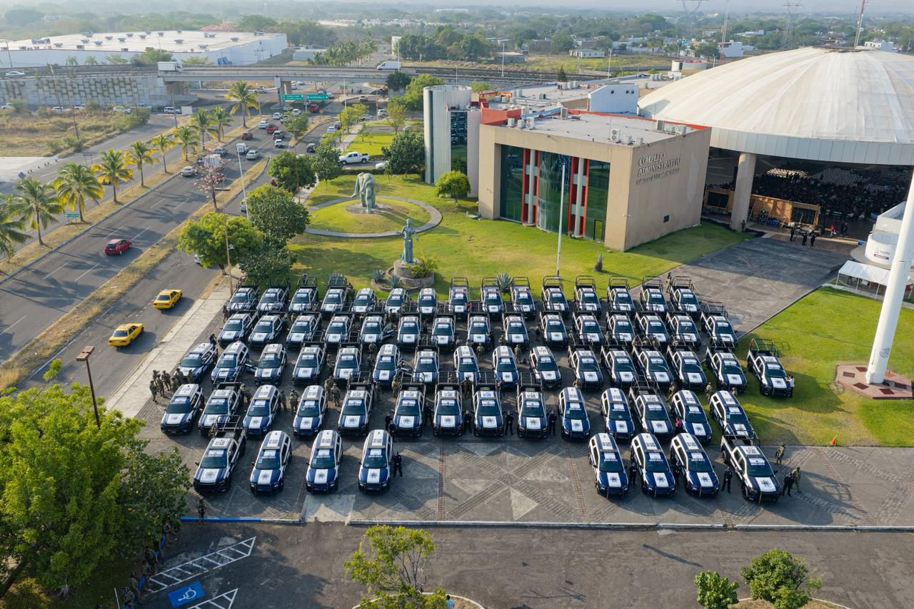 Este jueves, la gobernadora de Colima, Indira Vizcaíno Silva, acompañada de distintas autoridades, entregó 70 patrullas y 575 ascensos a elementos de la Policía Estatal Preventiva y del Sistema Estatal Penitenciario, con inversión total de 69 millones 543 mil pesos, para fortalecer el trabajo de la Secretaría de Seguridad y Protección Ciudadana (SSPC), en favor de las familias colimenses.