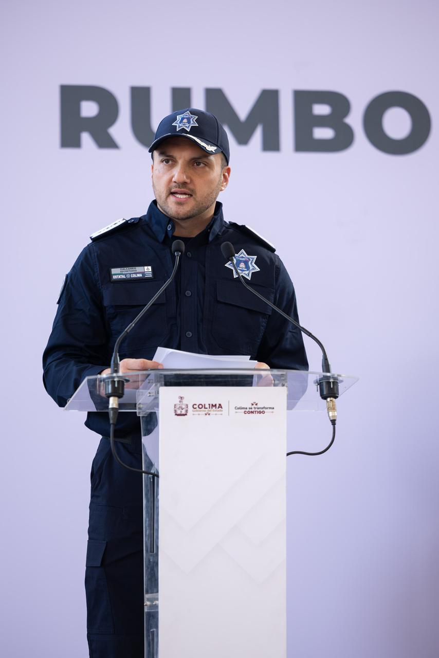 El titular de la SSPC del Gobierno del Estado de Colima, Teniente Fabián Ricardo Gómez Calcáneo, dijo que este día marca un ante y un después; “hoy no sólo estamos entregando grados, estamos formando una nueva línea de frente, porque cada insignia que hoy recibieron no representa un privilegio, representa una carga, una responsabilidad y si es necesario, un sacrificio”