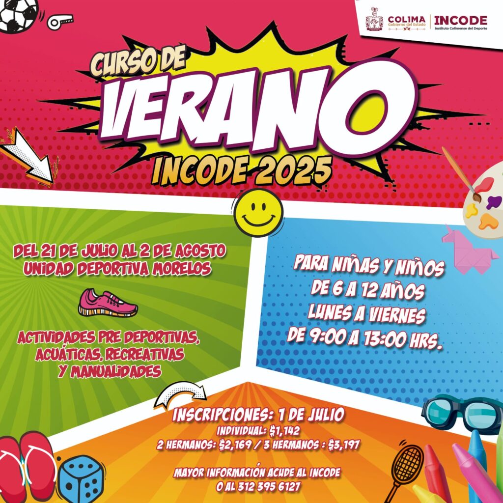 El próximo lunes será el último día para inscribirse al Curso de Verano 2025 que organiza el Instituto Colimense del Deporte (Incode) del Gobierno del Estado, por lo que invita a registrar a las infancias y juventudes en las oficinas de la dependencia gubernamental, los días jueves 17, viernes 18 y lunes 21, de 9:00 a 18:00 horas.