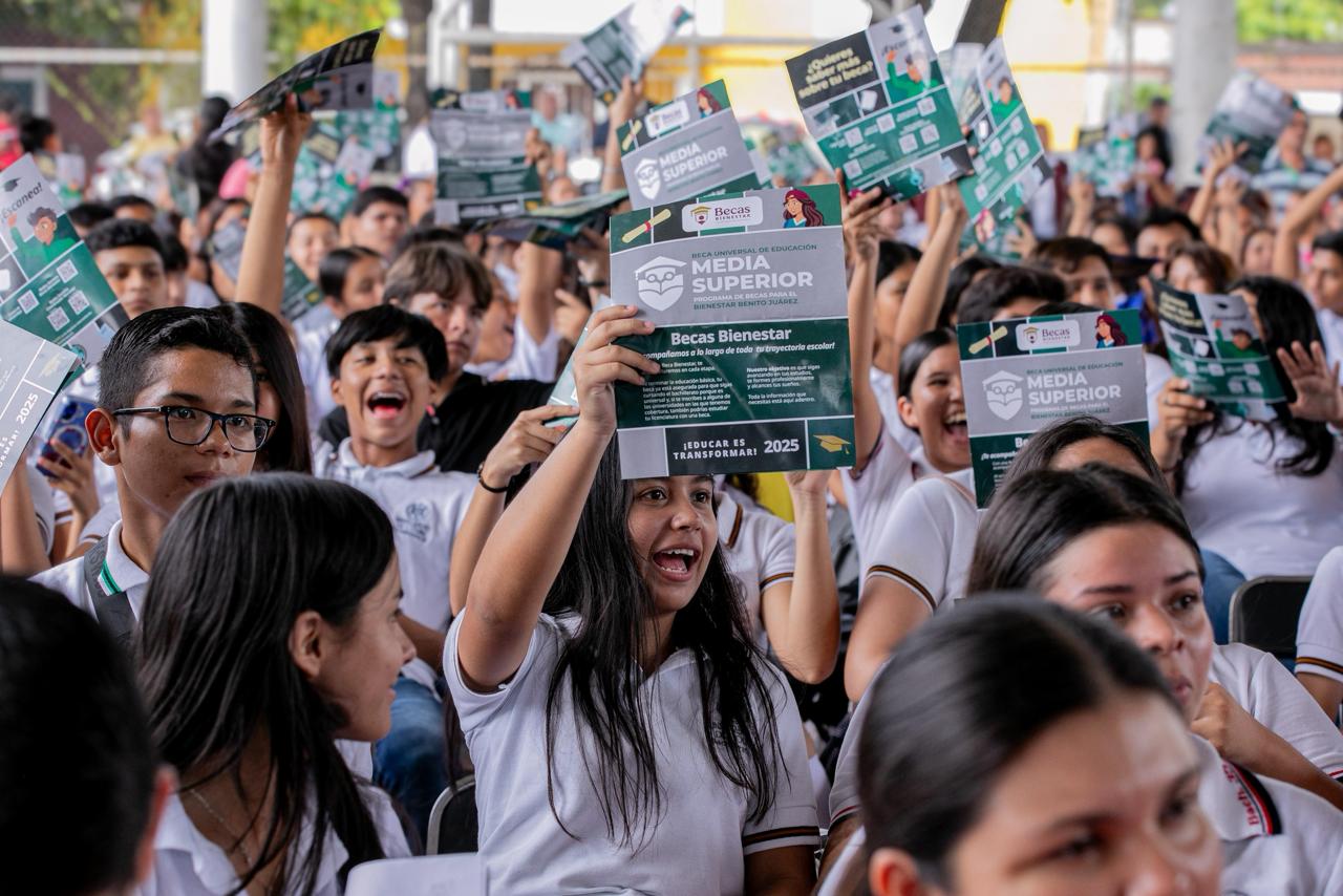 «Cuando les entregamos su computadora les dijimos que no había nada más importante para nosotros que generar herramientas que les permitan a todos tener las mismas oportunidades de seguir estudiando y esta beca es un ejemplo de ello, del compromiso que tiene nuestra presidenta (Claudia Sheinbaum Pardo) con ustedes, de la confianza que le tiene a su generación, de la fe que tenemos en que ustedes son quienes van a permitir que nuestro país siga avanzando en las cosas buenas», expresó.