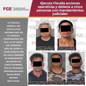 La Fiscalía General del Estado (FGE) informa que, en el periodo comprendido del 16 al 22 de marzo del presente...